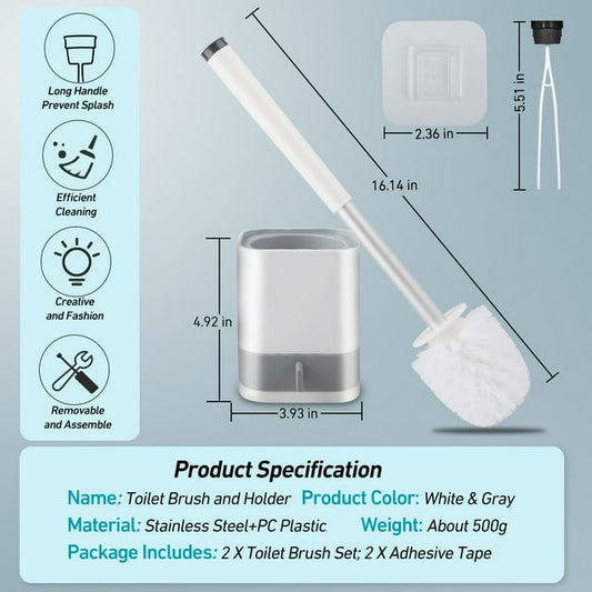 BCOOSS Toilet Bowl Brush and Caddy Set 2 Pack - Bathroom Scrubber Cleaner Brush with Holder