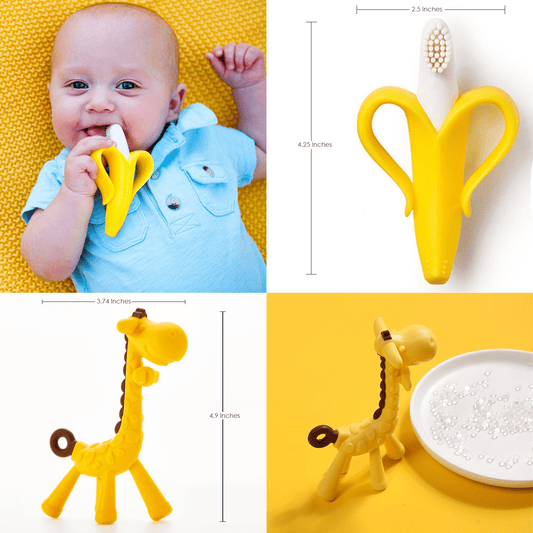 BabyGoods Teething Mitten Infant Glove with Banana Brush and Giraffe Teether, Pink, 3 Count