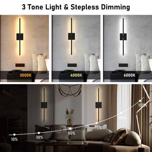 Battery Operated Wall Sconces with Remote Control,Wall Sconces Set of Two,3000K-6000K LED Wireless Wall Light for Bedroom, Hallway, Background Wall (2 Pack)
