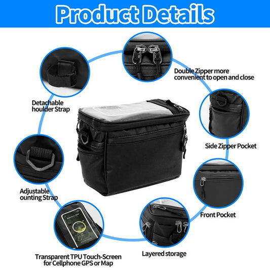 Bike Bag For Bicycles, BUSATIA Bike Handlebar Bag,Bicycle Bag Large Bicycle Front Storage Pouch Bag,6.5 inch Transparent Pouch with Shoulder Strap