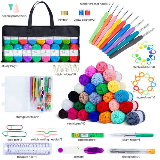 BCOOSS 113PCS Crochet Kit for Beginners Adults Crochet Hook Set with Crochet Yarn,Needles, Accessories