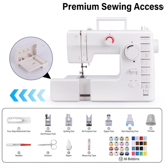 BCOOSS Portable Sewing Machine for Beginners 38 Built-in Stitches with Extension Table &Dual Speed