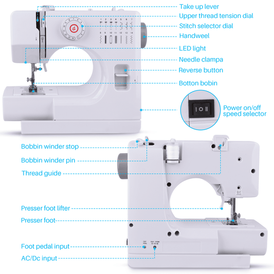 BCOOSS Sewing Machine with 14 Built-in Stitch Multifunctional Portable Machine with Extension Table