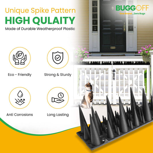 Bird & Rodent Spikes, Unique spike pattern effectively deters pesky Pigeons, Squirrels, Raccoons. Installs on fences, gates, roofs, walls and more! (15 Feet, Green Plastic)