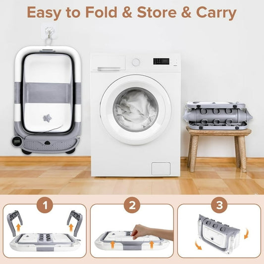 Collapsible Baby Bathtubs for Newborns to Toddler, Infants Anti Slip Foldable Bath Tub with Thermometer & Cushion