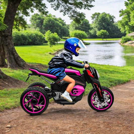 CIPACHO 12V Three Wheel Ride On Motorcycle, Kids Electric Motorbike Car with Horns, LED Lights, Gift for Kids 3-8 Years, Pink
