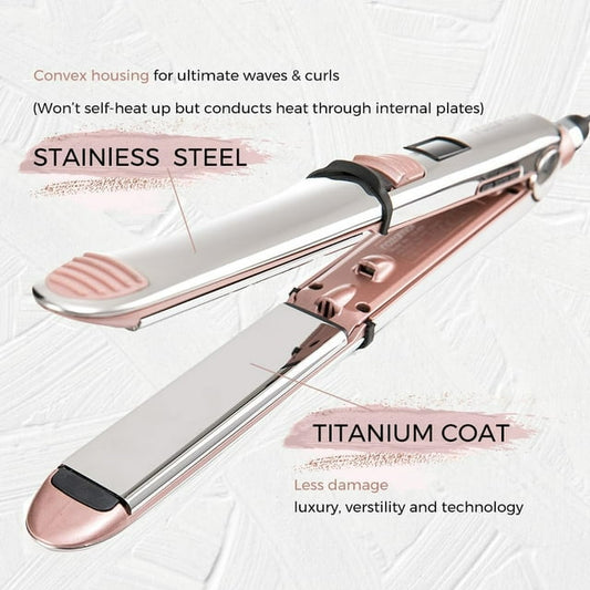 Ceramic Flat Iron Hair Straightener | Adjustable Temp Dual Voltage Hair Straightening Iron | Tourmaline-Infused Flat Iron