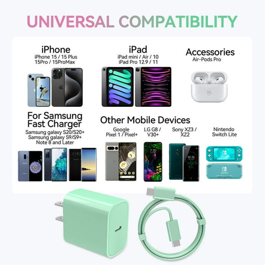 Charger for iPhone 16 15, 20W USB C Wall Charger, Type C Charger Block 2 Pack with 2 Pack 6FT Cable for iPhone 16/15/15 Plus/15 Pro/15 Pro Max/iPad Pro/Mini/Air/Air4/AirPods/Samsung