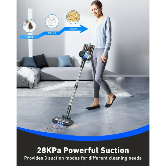 Cocbny Cordless Vacuum Cleaner, 28Kpa 8 in 1 Lightweight Stick Vacuum for Carpet Floor Pet Hair A27, Blue