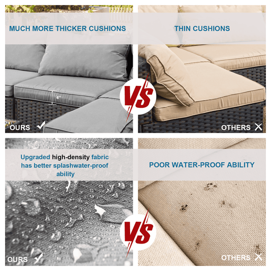 Gaildon 5 Piece Patio Furniture Set with Fire Pit Table, All Weather Outdoor Sectional PE Rattan, Patio Conversation Sets with Cushions for Garden Lawn Balcony Porch Deck, Grey