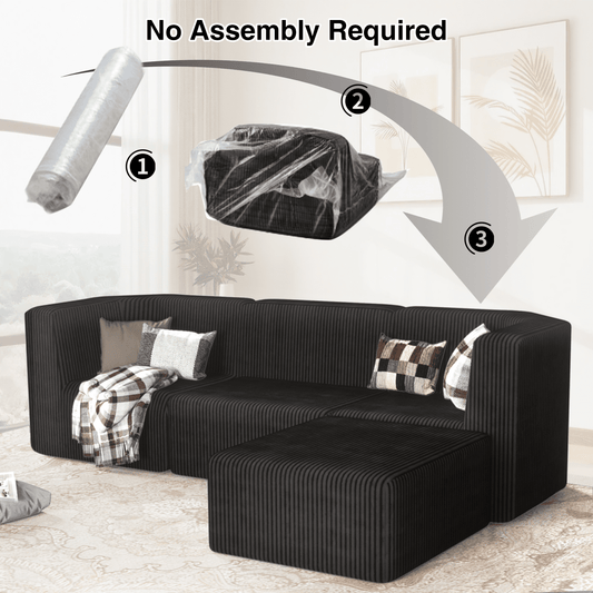 Gaildon Corduroy Sponge Sofa Lounge Chair Fluffy Modern Sleeper Chair With Removable Footrest for Indoor Living Room and Bedroom No Assembly Needed, Black