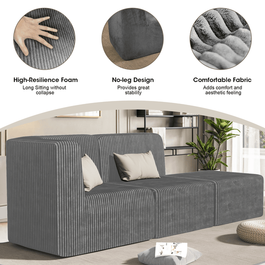 Gaildon Corduroy Sponge Sofa Lounge Chair Fluffy Modern Sleeper Chair With Removable Footrest for Indoor Living Room and Bedroom No Assembly Needed, Grey