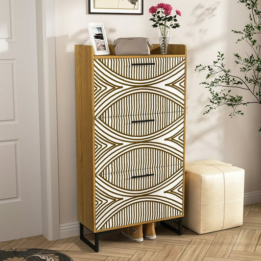 Hommoo 3 Tiers Flip Shoe Storage Cabinet with PVC painted, Modern Wood Shoe Rack Storage Organizer for Home, Brown