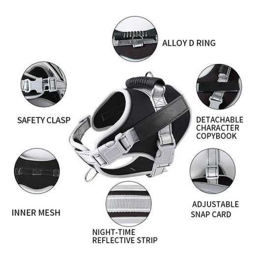Hmyfdith Pet Chest Harness , Reflective Oxford Vest Harness with Handle , Leash for Dogs,Black,m