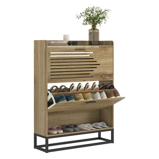 Hommoo Shoe Storage Cabinet, Freestanding Organizer with 2 Flip Drawers, Shoe Rack Multifunctional Cabinet for Entryway ,Brown