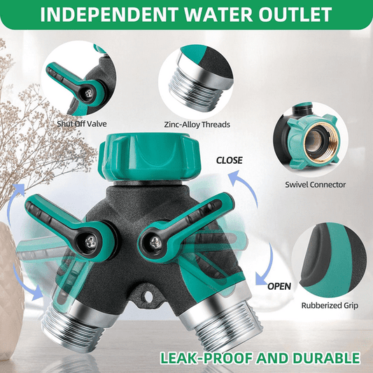 Hose Splitter, Sherry 2 Way Heavy Duty, Solid Brass Garden Faucet, Faucet Splitter, Hose y Splitter, Garden Hose y Splitter, Hose Bib Splitter, All Metal, with Shut off Valve