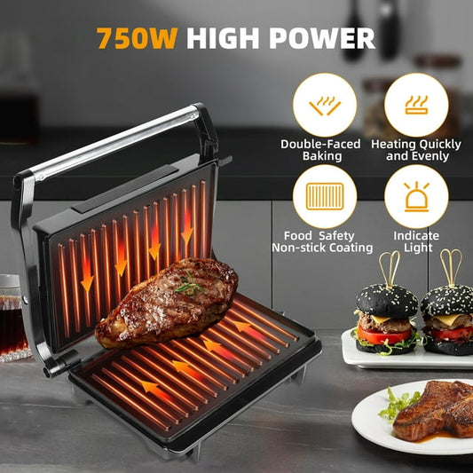 Kailwokk Panini Press Grill,Non-Stick Coated Plates Sandwich Maker,2 Slice Stainless Steel Electric Indoor Grill Opens 180° to Fit Any Thickness Sandwich,Burgers,Steak