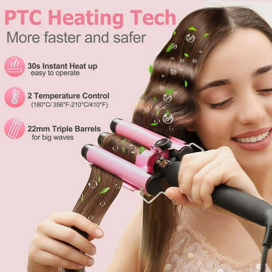 Morfone 3 Jumbo Barrel Curling Iron Wand 22mm Hair Waver Temperature Adjustable Ceramic Big Waves Hair Crimper (Pink)