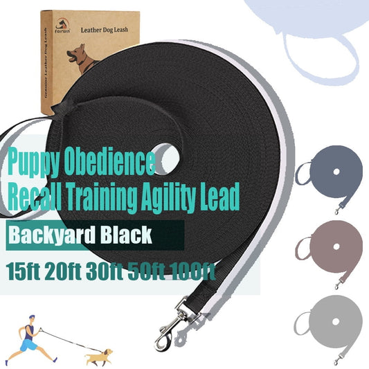 moopom Dog/Puppy Obedience Recall Training Agility Lead - 15ft 20ft 30ft 50ft 100ft Leash Great for Training, Play, Camping, or Backyard Black