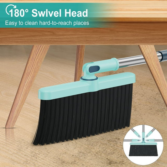 MYSPRI Broom and Dustpan Set for Home, Stand up Broom and Dust Pan Combo Set with Long Handle for Kitchen Office Floor Cleaning