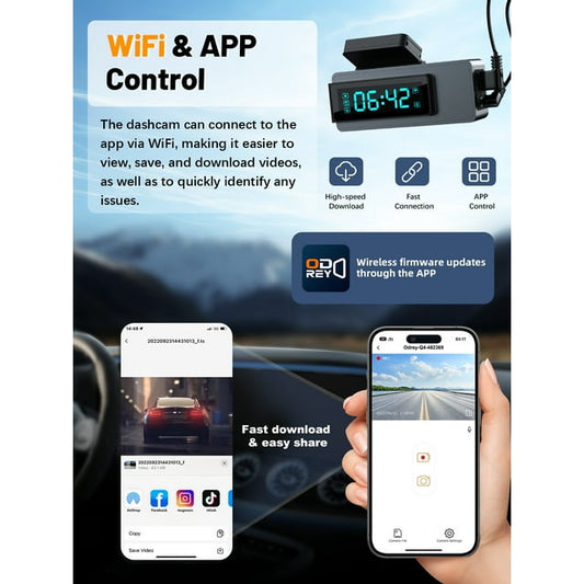 ODREY Dash Cam Front and Rear, 4K+2.5K 5G WiFi & WDR Dash Camera for Car with 64GB Card dashcam, G-Sensor, Super Night Vision, Loop Recording, Parking Mode