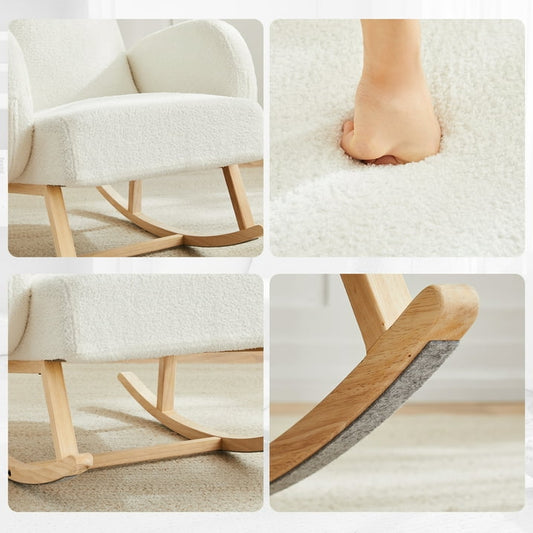 Nifamembo Teddy Nursery Rocking Chair with Solid Wood Legs, Side Pockets for Living Room
