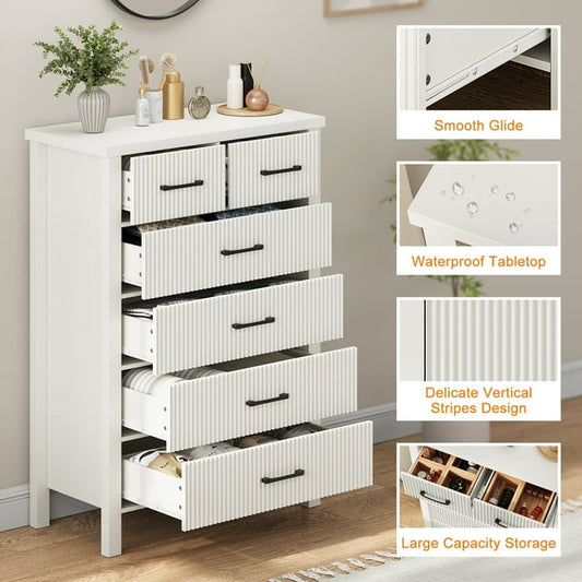 Nifamembo Modern Fluted 6 Drawer Dresser with Solid Wood Legs for Bedroom, Entryway