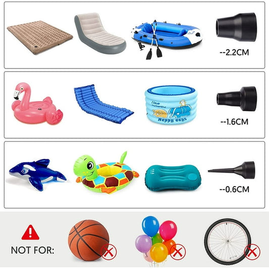 NIGHTEEN Electric Air Mattress Pump Battery Powered for Inflatables Toy Quick-Fill Inflator Deflator with 3 Nozzles