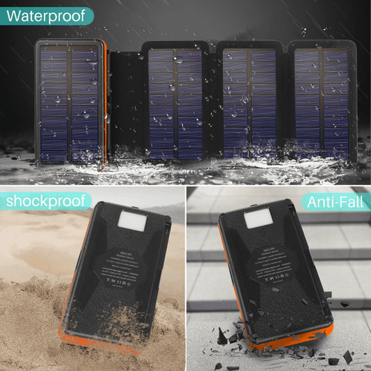 OWNTECH Portable Solar Charger for iphone android, 30000mah Power Bank with 4 Solar Panel and Compass