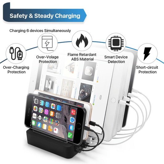 OWNTECH USB Charging Station for Multiple Devices 6 Port Multi Charger Station Compatible with iPhone iPad Cell Phone Tablets