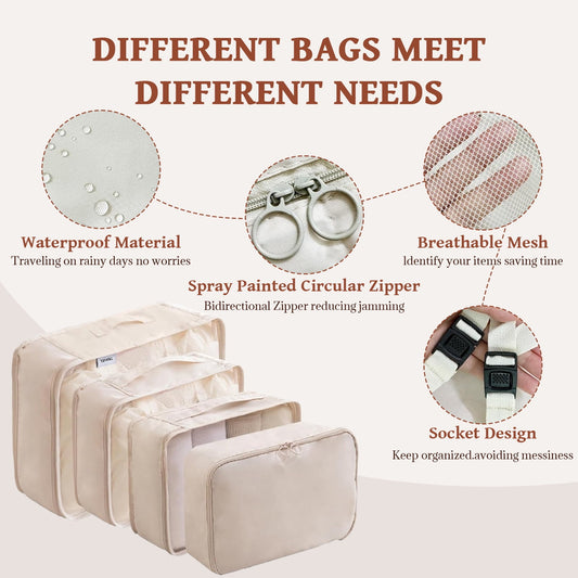 Packing Cubes - Travel Pouch Set, Compression Bags For Travel, Suitcase Essentials Organizer Bags Set