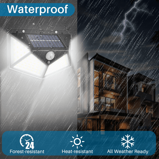 OWNTECH Solar Outdoor Lights Waterproof Motion Sensor 100 LEDs for Exterior Wall, Patio, Yard, Garage, Deck, Garden, 2 Pack