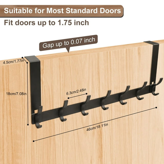 Over The Door Hooks, BUSATIA Door Hanger Hooks for Hanging, Over The Door Towel Racks for Bathroom with 14 Coat Hooks, Over The Door Hanger for Coats and Towels, Black