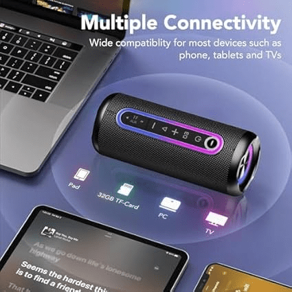Portable Bluetooth Speaker IPX7 Waterproof Wireless Speaker with 30W Powerful Speaker 30Hrs Playtime Colorful Flashing Lights TWS Wireless Pairing for Outdoor/Party/Beach/Travel/Gifts