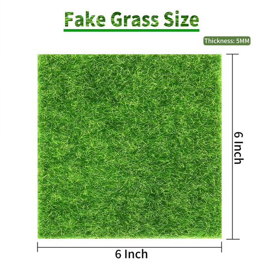 Sherry 6 Packs Fake Grass for Crafts Artificial Garden Grass for Dollhouse 6 X 6 Inches Miniature Ornament Garden Dollhouse DIY Grass