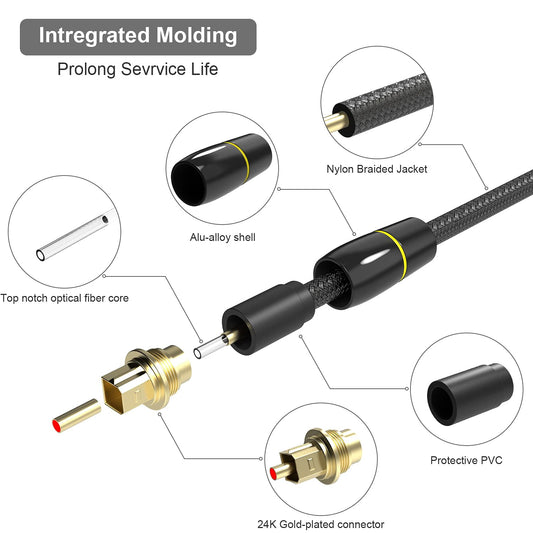 Sherry Digital Optical Audio Cable (3.3 Feet/1 Meter), 24K Gold-Plated Flawless Audio Fiber Optic Cable Male to Male Cord for Home Theater,Sound Bar, TV, PS, Xbox, Samsung