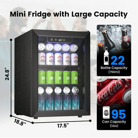 Simzlife 100-Can Beverage Refrigerator & Cooler with LED Light, Air Cooled Frost Free, 2.7 cu. ft Beverage Fridge for Home/Office/Bar