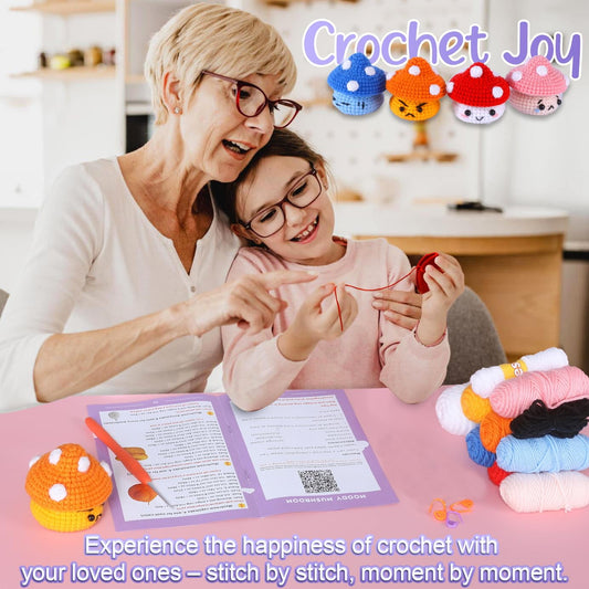 Sherry Beginner Crochet Kit – 4 Pack Mushroom Yarn Set for Kids & Adults – Easy DIY Knitting Supplies for Beginners – Learn Crochet with Beginner-Friendly Yarn