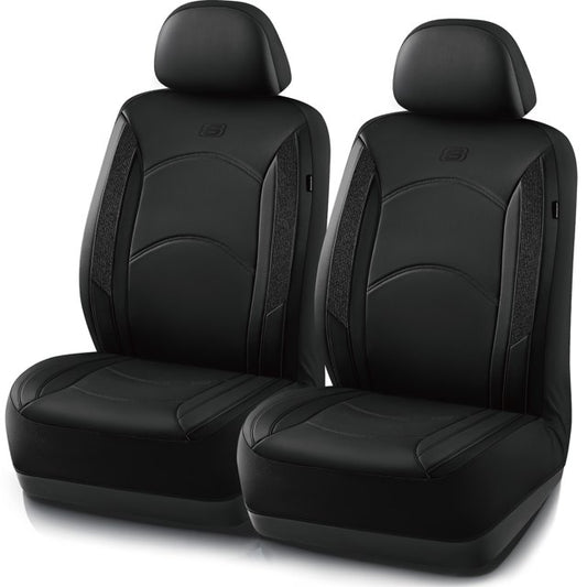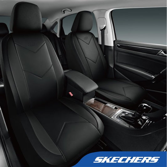 Skechers Sport Leather Car Seat Cover – Front Seat Premium Comfort, Breathable Design, Universal Fit for Cars, SUVs, and Trucks - Black