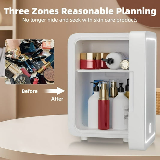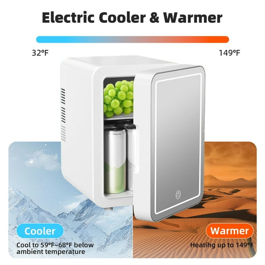 Skincare Fridge With Dimmable LED Light Mirror, 4L Compact Makeup Mini Fridge for Bedroom Car Office Dorm