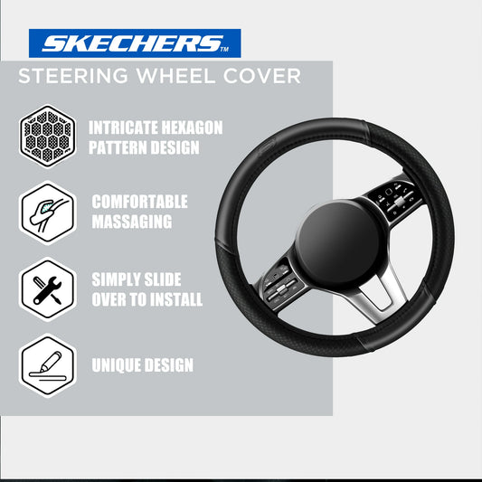 Skechers Diamond Leather Car Steering Wheel Cover – Universal Fit, 24MP37-SWC-BK 0.79Lbs