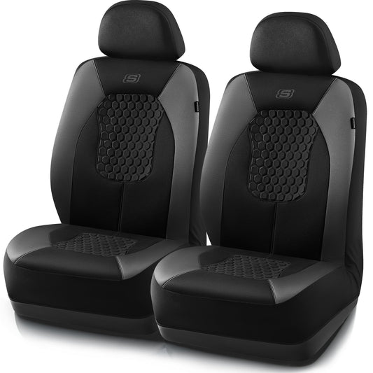 Skechers Leather Front Car Seat Cover – Stylish Diamond Design, Universal Fit - Black