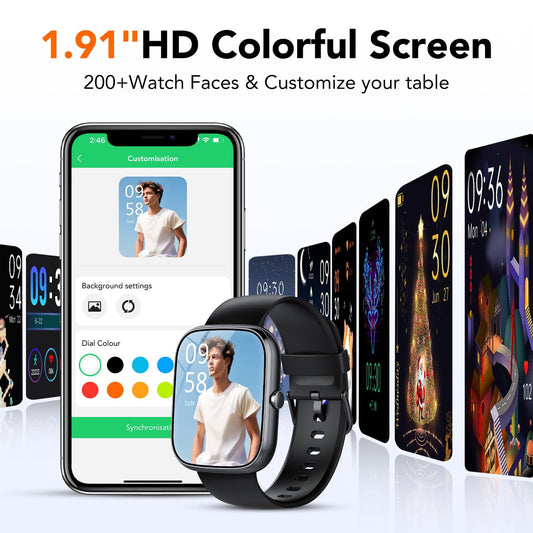 Smart Watch for Android and iPhone, IP68 Waterproof Smartwatch for Women Men 100+ Sports Modes 1.91-inch Fitness Tracker, Smart Watch with Bluetooth Call(Answer/Make Calls), for Gift Black