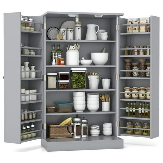 Spaco 17-Tier Kitchen Pantry Cabinet with 2 Doors and 6 Adjustable Shelves, Cabinet to Storage Book, Shoes and Clothes, Freestanding 5-Tier Shelving, Gray