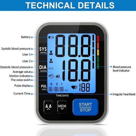 Upper Arm Blood Pressure Monitor, Automatic Digital BP Machine Blood Pressure Cuffs with Speaker, FSA Eligible, Large Cuff, 2 Users, 240 Recordings for Home