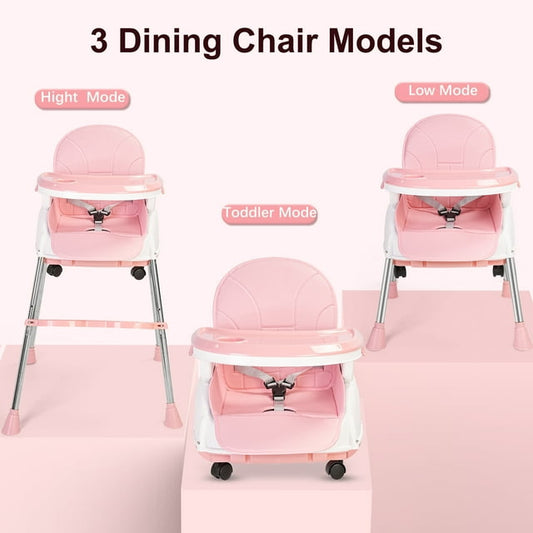 Vipuse Baby High Chair,5-in-1 Convertible Highchair for Babies and Toddlers with 3-Point Seat Belt,Double-layer Dinner Plate,Baby Seat for Walk,Pink