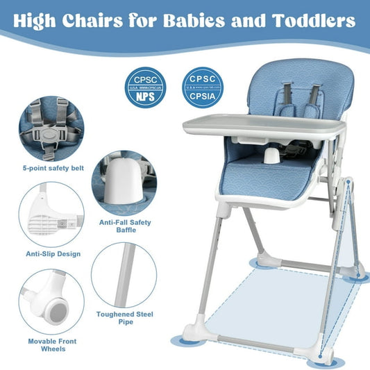 Vipuse Baby High Chair,3-in-1 Baby Feeding Chair with Wheels, Durable Cotton Seat,RemovableTray,Support Multi-Gear Adjustment,Blue