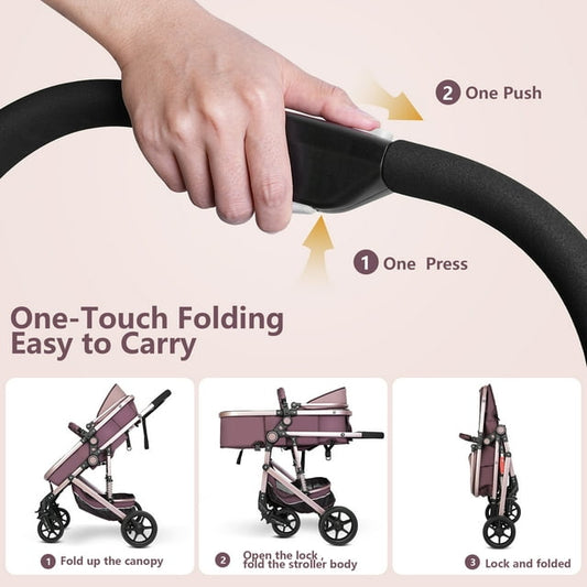 Vipuse Baby Stroller,3 in 1 Convertible Newborn Bassinet Stroller with Adjustable Backrest & Awning,Travel Stroller for Baby 0-3 Years Old,Brown