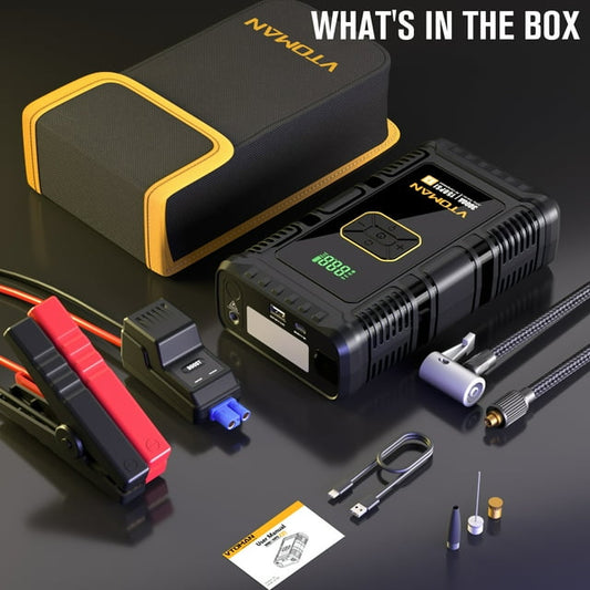 VTOMAN X4 2500A 150PSI Jump Starter Box - 12V Battery Charger with Auto Shut-off & LED Light