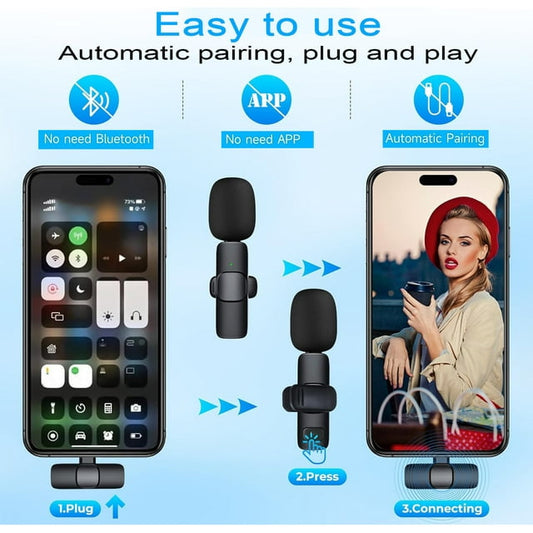 Wireless Lavalier Microphone for iPhone/Android/iPad/Laptop, Mini Microphone, Microphone for Type-C Phone, Wireless Microphones, Microphone for Video Recording, YouTube, Vlog, Tiktok, Interview